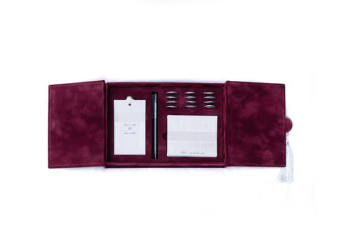 A velvet stationery set consisting of: